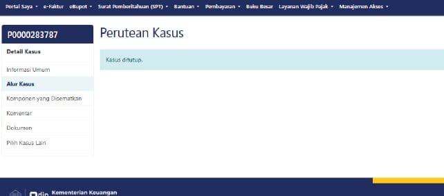 Pemantauan Proses: Pastikan pada grid alur kasus terdapat tulisan “Kasus ditutup (End)”.