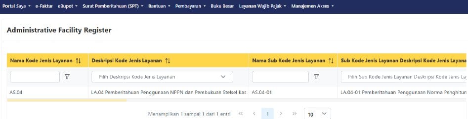 Memastikan Daftar Fasilitas Terekam: Pemohon memastikan bahwa produk hukum sudah tercatat dalam sistem DJP dengan masuk ke akun coretaxnya, di modul Layanan Wajib Pajak → Layanan Administrasi → Daftar Fasilitas Saya. Mengingat layanan ini berupa pemberitahuan, maka produk hukum yang terbit dan tercatat adalah dokumen pemberitahuan berupa BPE.